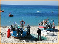 in Salema. Each morning, the fishermen push their small